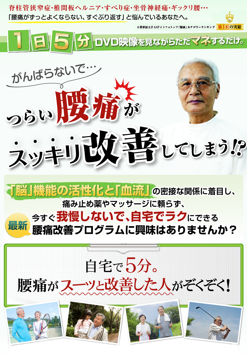 「腰痛改善5ミニッツ」は、必ずや