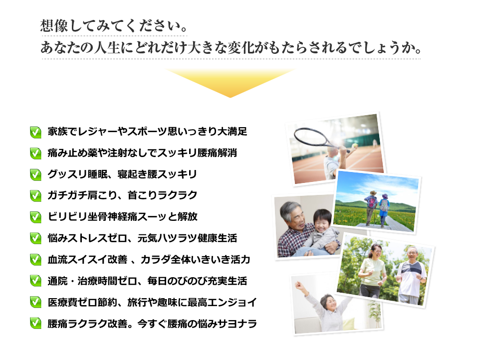 苦しく、つらい腰痛をすっきり解消して、