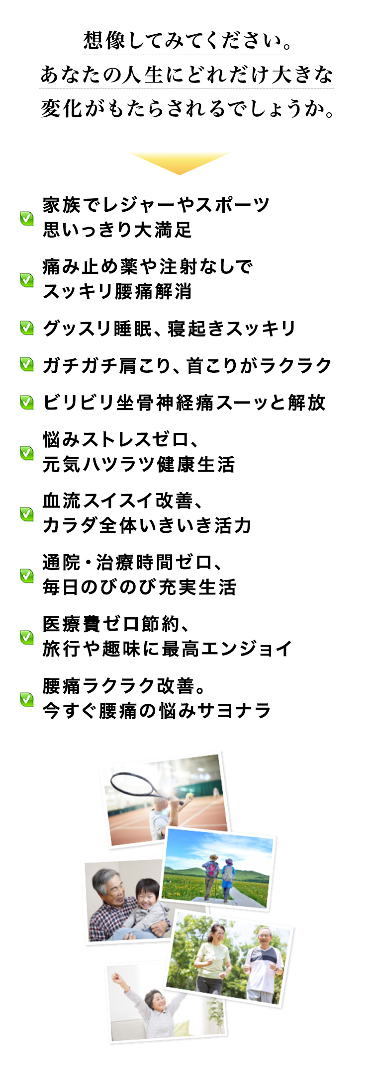 長年、悩まされてきた腰痛が嘘のようです。