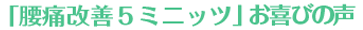 「腰痛改善5ミニッツ」は、必ずや